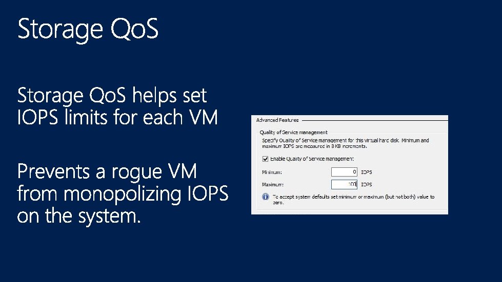 Tenant Isolation Traffic Shaping Port ACL Bandwidth Minimum Security DHCP Guard Performance Dynamic VMQ Private VLAN Bandwidth Cap Trunk mode IPsec Task Offload Port Mirroring Event Tracing (ETW) Router Guard Network Virtualization Diagnostics SR-IOV * Unified Tracing (UT)