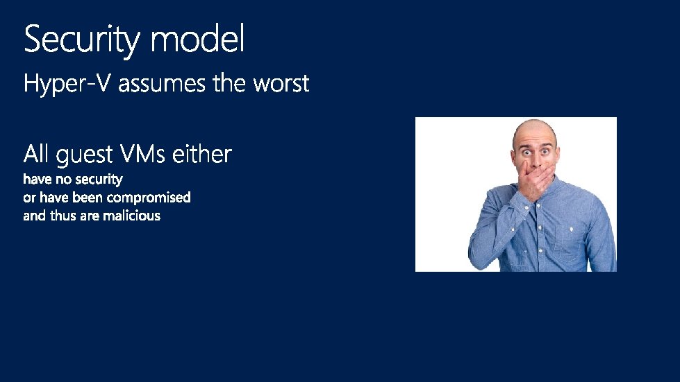 Management OS VM Worker Processes VM Management Service Guest VM 1 Guest VM n User Mode VID Win. Hv Hypervisor VM Bus Hypercalls … Win. Hv VM Bus Scheduler VM Bus Partition Manager Model Specific Registers Hardware Address Manager Interrupt Controller