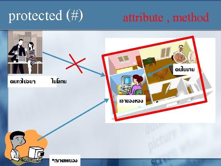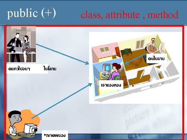 เนอหา ตวแปร Object, Class String n Encapsulation n Access modifier n private, n public, n protected n package (none หรอ default) n