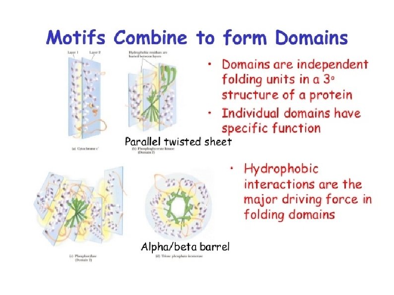 Class: secondary structure content (e. g. mainlyalpha, mainly-beta, mixed alpha/beta or 'few secondary structures'); Architecture: general arrangement of the secondary structures Topology (fold) takes into account the connectivity of secondary structures in the chain; Homologous Superfamily: domains that are believed to be related by a common ancestor.