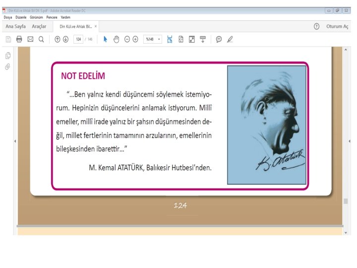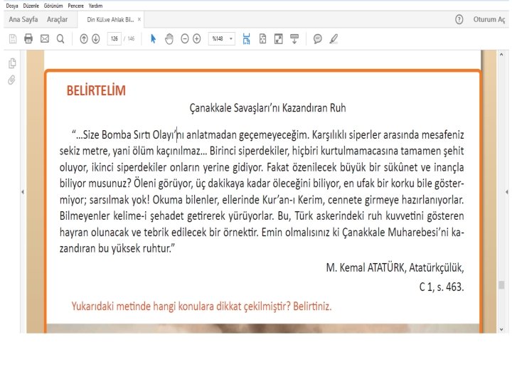 PAYLAŞALIM “Bizim milletimiz vatanı için hürriyeti ve egemenliği için fedakâr bir halktır…” M. Kemal ATATÜRK, Atatürkçülük, C I, s. 49. Atatürk, yukarıdaki sözünde “fedakâr” kelimesiyle • neyi kastetmiş olabilir? Düşüncelerinizi • arkadaşlarınızla paylaşınız. • • •