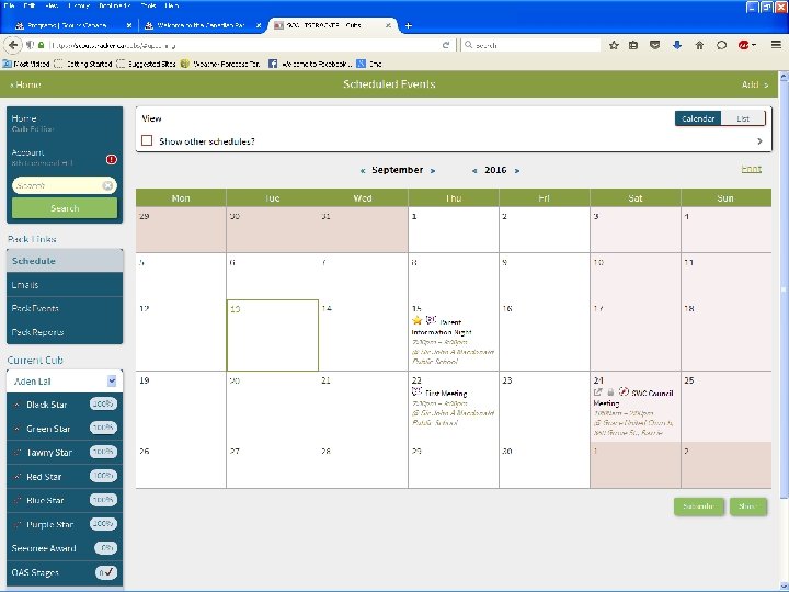Scouts. Tracker System A system which shows the calendar of our Cub Pack program for the year A system which you can check and monitor the progress of your children You will receive an e-mail to set up access to the system