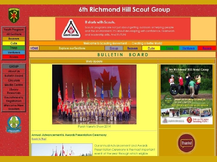 Thanks Button Show appreciation to the Scouters Link: http: //www. 6 thrichmondhillscoutgroup. org/index 2. html Scouters will receive certificates and awards from Scouts Canada