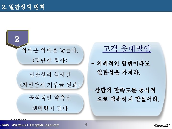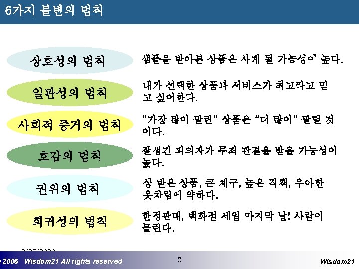 6 Wisdom 21 Management Consulting 21 21 Wisdom Slides: 10 Download presentation 고객을 사로잡는 6가지 법칙 Wisdom 21 Management Consulting 21세기 기업경영의 마르지 않는 샘 물 위즈덤 21의 정보 자료입니다. Wisdom 21 Management Consulting Business Introduction