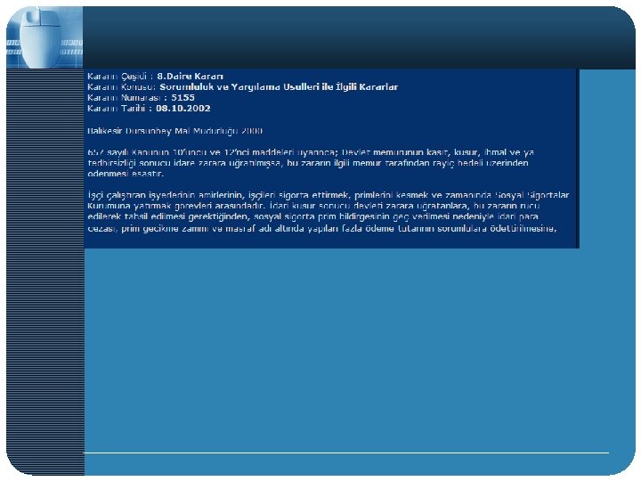 Sayıştay Genel Kurul Kararı Karar Tarihi : 14. 6. 2007 Karar No : 5189/1 ÜST YÖNETİCİNİN SORUMLULUĞU Üst yöneticiler işlerin gidişatından harcama yetkililerinin ve diğer görevlilerin bilgilendirmeleri ve raporları ile bilgi sahibi olmaktadırlar. Bununla birlikte Üst yöneticilerin özel Kanunlardan doğan Sayıştaya karşı mali sorumlulukları olabileceği gibi, münferit bir olayda sorumluluklarına hükmedilmeleri de gerekebilir. Bu husus, meselenin Sayıştay yargısında görüşülmesi sırasında hükme bağlanacak bir konudur. Dolayısıyla bu aşamada bir genelleme yaparak üst yöneticilerin, işlemlerin hukuka uygun olarak yürütülmesinden sorumlu olacakları ya da olmayacakları yönünde bir görüş belirtilmesi uygun bulunmamaktadır. ”