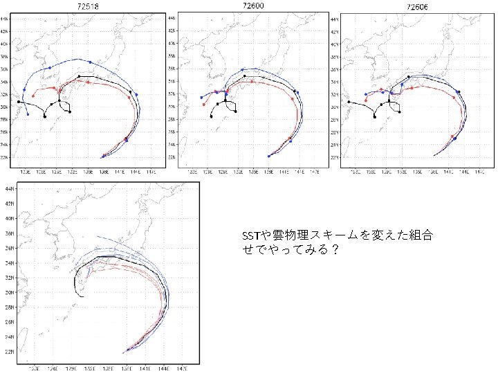 台風 寒冷渦 1005 9620 9600 995 9580 985 9560 GSM 975 2018 GSM 9540 2018 2008 9520 965 2008 9500 955 945 7. 26. 2018 0: 00 9480 7. 2018 0: 00 7. 28. 2018 0: 00 7. 29. 2018 0: 00 7. 30. 2018 0: 00 9460 7. 26. 2018 0: 00 7. 28. 2018 0: 00 7. 29. 2018 0: 00 7. 30. 2018 0: 00 2008年のSSTを入れると台風は発達 寒冷渦は 2018より弱くなってしまった 台風の進路の差は小さく、ベストトラック よりかなり内側