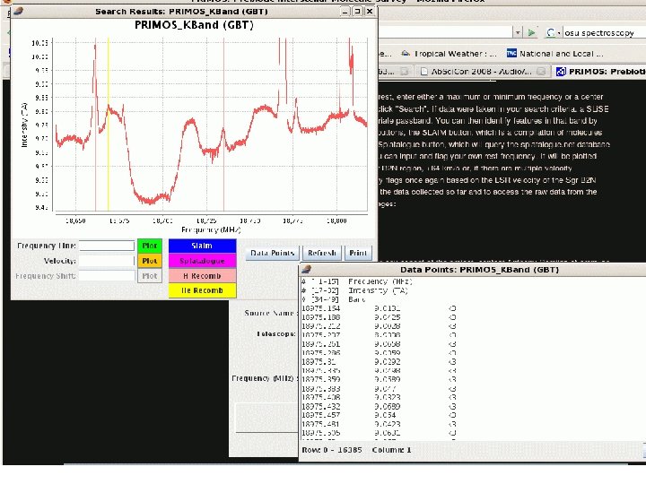 The GBT PRIMOS Project: Searching for our Molecular Origins GBT There are many specific reasons why a deep spectral line survey is important and timely: 1) In practical terms, a sensitive and methodical survey is one of the most efficient ways to detect new species (WI 03, RG 01, RG 02). 2) Large databases of laboratory Image courtesy of NRAO/AUI and Harry Morton spectroscopic transition frequencies exist already. A thorough, sensitive survey would allow astrochemists to utilize these databases to make firm, multi-transition identifications of species. 3) This survey will produce a complete inventory of known interstellar molecules and their transitions and is potentially one of the most important outcomes of this survey. 4) The results will guide further instrumentation development on the GBT.