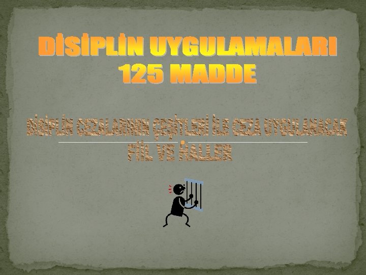 DİSİPLİN CEZALARININ VERİLME AŞAMASINDA DİKKAT EDİLECEK HUSUS Disiplin cezası verilmesine sebep olmuş bir fiil veya halin cezaların sicilden silinmesine ilişkin süre içinde tekerrüründe bir derece ağır ceza uygulanır. Örneğin: Vezirköprü A okulu öğretmeni Y 25. 12. 2013 tarihinde görev mahallini izinsiz terk ettiğinden 125/A-b ( özürsüz veya izinsiz olarak göreve geç gelmek , erken ayrılmak, görev mahallini terk etmek) maddesi gereğince uyarma cezası ile cezalandırılır. Y 25. 10. 2014 tarihinde yine görev yerini izinsiz terk etmek suçunu işlerse burada tekerrür hükümleri uygulanacak ve Y’ ye bir derece ağır ceza olan Kınama cezası verilecektir. Aynı derecede cezayı gerektiren fakat ayrı fiil veya haller nedeniyle verilen disiplin cezalarının üçüncü uygulanmasında bir derece ağır ceza verilir. Örneğin: Vezirköprü B okulu öğretmeni Z 10. 06. 2014 tarihinde 125/A-a bendi gereğince Uyarma cezası 18. 10. 2014 tarihinde 125/A-e bendi gereğince Z 25. 10. 2014 tarihinde yine uyarma cezasını gerektiren fiillerden birini işler ise o zaman verilecek ceza bir derece ağır olan Kınama olacaktır. Geçmiş hizmetleri sırasında çalışmaları olumlu olan ve iyi veya çok iyi derecede sicil alan memurlar için verilecek cezalarda bir derece hafif olan uygulanabilir.