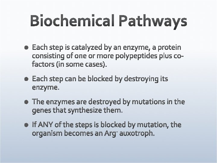 1 2 3 4 5 6 W - + + - X - - - Y - + - - Z - - - + - - His + + + Mutants 1 and 6 do this: they block the final step.