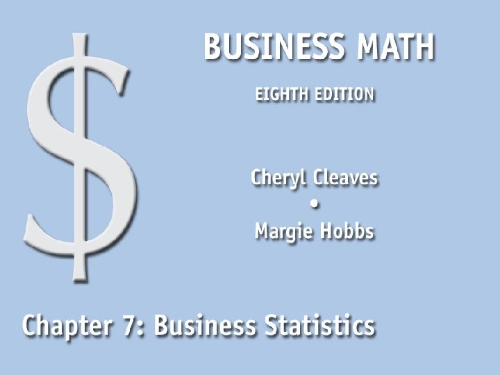 7. 1 Measures of Central Tendency n Find the mean n Find the median n Find the mode n Make and interpret a frequency distribution n Find the mean of grouped data Business Math, Eighth Edition Cleaves/Hobbs © 2009 Pearson Education, Inc. Upper Saddle River, NJ 07458 All Rights Reserved