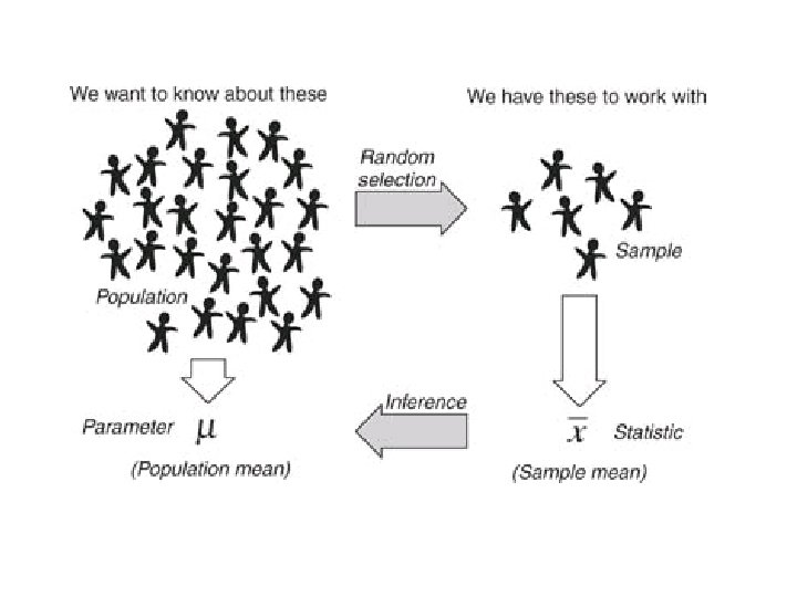The process of statistical inference involves using information from a sample to draw conclusions about a wider population. Different random samples yield different statistics. We need to be able to describe the sampling distribution of possible statistic values in order to perform statistical inference. We can think of a statistic as a random variable because it takes numerical values that describe the outcomes of the random sampling process. Population Sample Collect data from a representative Sample. . . Make an Inference about the Population.