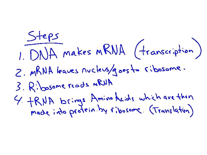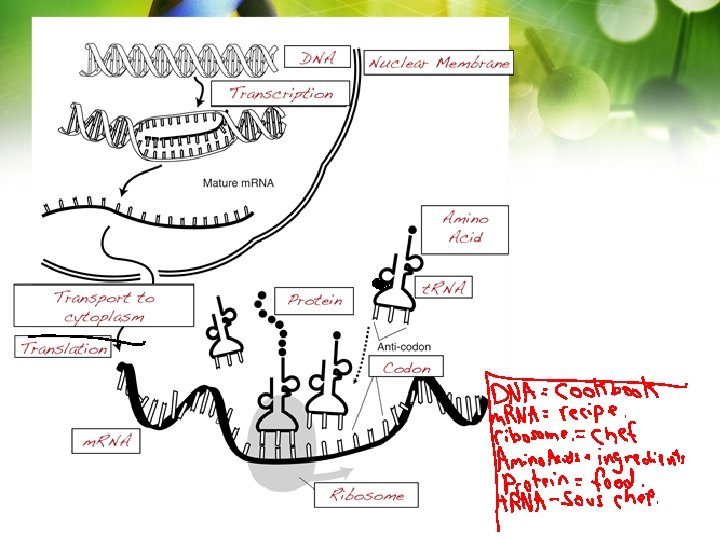 Transcription IF DNA is like a cookbook (instructions) then m. RNA is like the ________