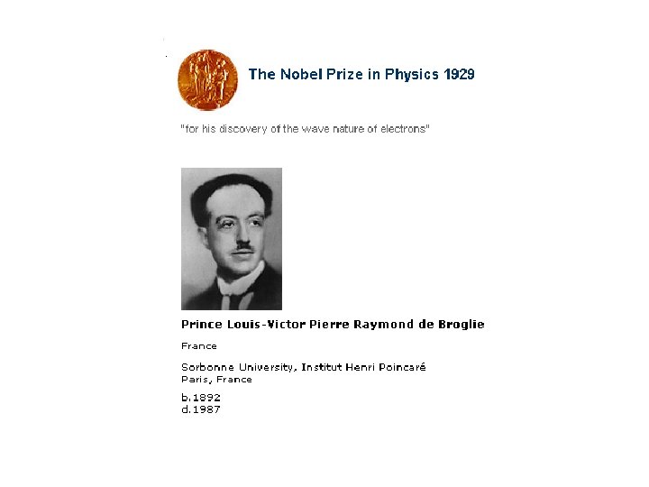 8 Teilchen als Wellen Louis de Broglie had the boldness to maintain that not all the properties of matter can be explained by theory that it consists of corpuscles (C. W. Oseen bei der Würdigung de Broglies zur Verleihung des Nobelpreises) 1924: De Broglie Wellenlänge eines Teilchens: = h/p = h/ 2 m 0 Ekin Einstein (1905), Annalen der Physik 17, 132: für Photonen