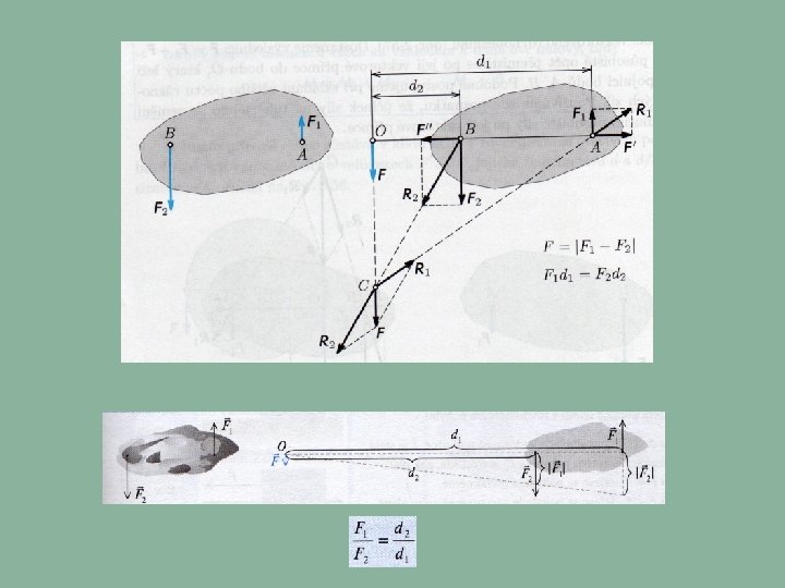 Rozklad síly na dvě různoběžné složky FG = F 1 + F 2 FG / 2 = F 1 sinα F 1 = F 2 F 1 = d 2/d · FG F 2 = d 1/d · FG F 1 d 1 = F 2 d 2