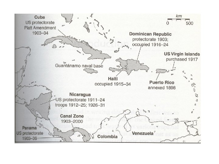 1898: Guerre Hispano-Américaine: Puerto Rico, Cuba, Philippines 1903 -14 Panama se sépare de la Colombie Droits au canal échangés contre la protection des États. Unis 1904 “Roosevelt Corollary”: U. S. grand bâton, policier pour la dette les États-Unis interviennent militairement 34 fois dans 9 pays jusqu'à 1934: Politique du « Bon voisin » = promesse de nonintervention