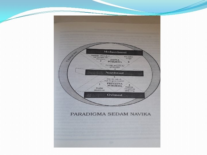 - sedam navika nisu skup zasebnih ili pojedinačnih poticajnih formula - dijagram na prethodnoj stranici vizualno prikazuje redoslijed i međuovisnost sedam navika ( ovisnost; neovisnost; međuovisnost)