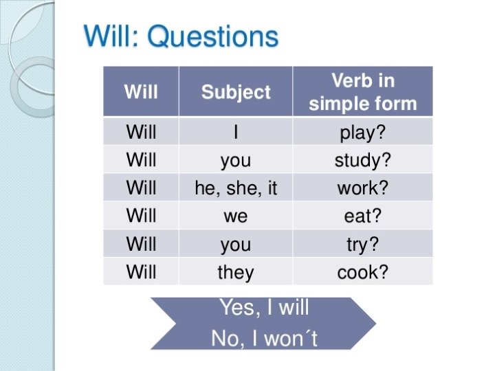 Promise: I will love you forever. Things will mend in the end. Prediction: I think it will rain in the evening. Flowers won’t grow under trees. Decision: Will you marry me, please? What will you say in reply?
