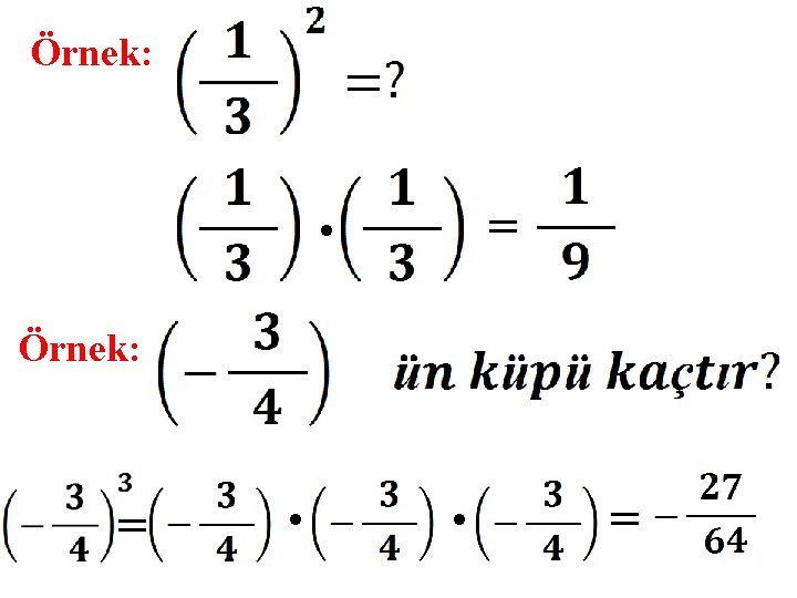 Rasyonel Sayıların Karelerini ve Küplerini Hesaplama *Küp derse 3. kuvveti alınır , karesi derse 2. kuvveti alınır. Örnek: . =