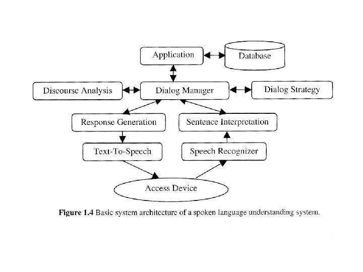 Speech & Natural Language Processing Areas in Natural Language Processing • • • Morphology Grammar & Parsing (syntactic analysis) Semantics Pragamatics Discourse / Dialogue Spoken Language Understanding Areas in Speech Recognition • Signal Processing • Phonetics • Word Recognition