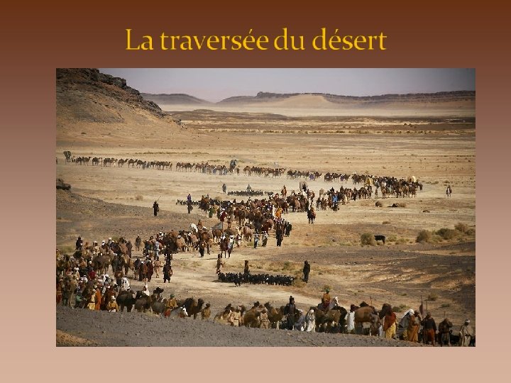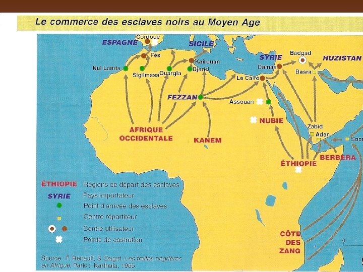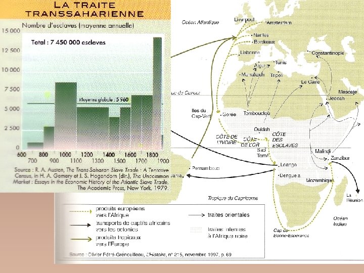 760 kms 800 kms Pendant toute la durée du voyage, la crainte les agite et les tient continuellement en émoi. A cela s'ajoutent les fatigues excessives de la marche, les tourments de la chaleur et du froid dans les déserts. Ce sont autant pour eux des causes de maladies et de morts. Ils succombent par milliers. . . La traite au. XIX d’après des sources tunisiennes Khalifa chater perso. hexabyte. tn/. . . /traite-final. htm Il arrive que des caravanes entières disparaissent 500 kms A Mourzouk, fondé au Xi. Vème siècle, arrivait deux ou trois caravanes par an. Les caravanes y restent un ou deux mois afin qu’arabes et esclaves se remettent de leur long voyage. 20% des esclaves mouraient au cours de la traversé soit deux fois plus que pour la traite transatlantique
