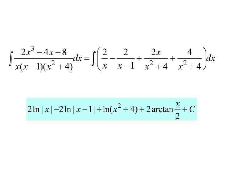 Quadratic Factors If x = 0 then A = 2 If x = 1 then B = -2 If x = -1 If x = 2 2 = -C +D 8 = 2 C+D Solving the system of equations you find C = 2 and D = 4.