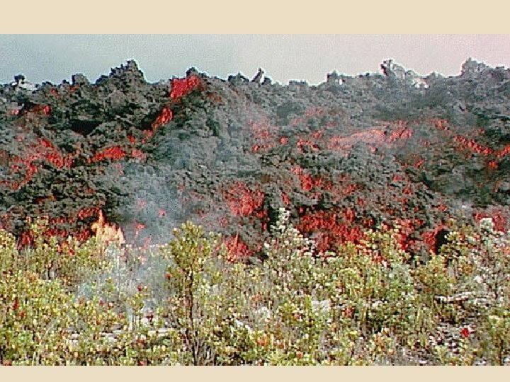 Lava formations 1. Explosive lava Pyroclastic material a) Pyroclast – lava solidifies in the atmosphere b) Pyroclastic flow – fast moving current of superheated gas and rock i. Can move hundreds of miles per hour 2. Effusive lava a) A’a: jagged, gravelly texture b) Pahoehoe: smooth, even lava flow c) Pillow lava: cools underwater forms rounded lobes