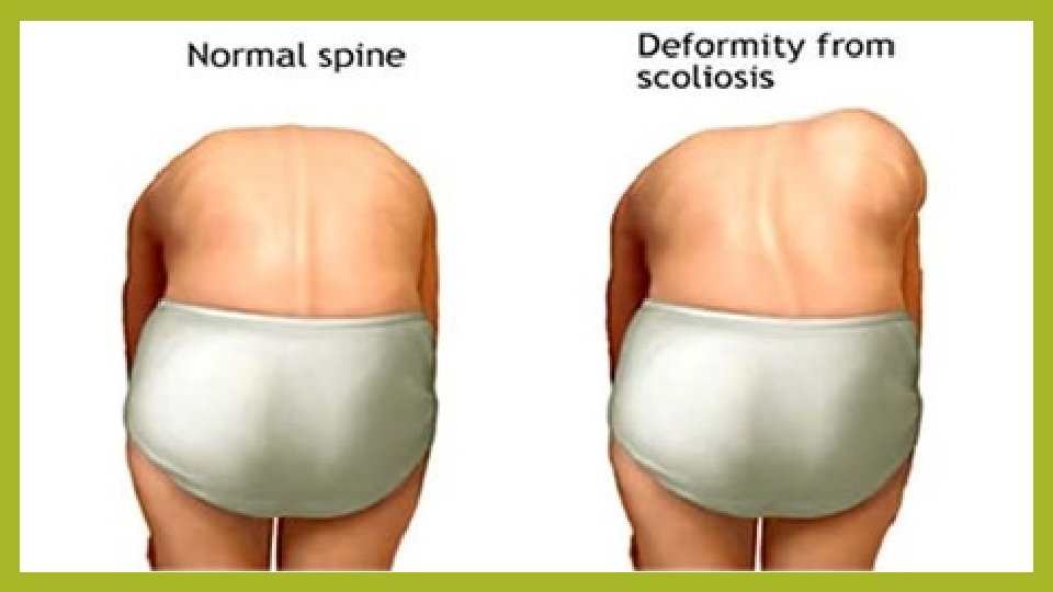 ETIOLOGIJA 1) idiopatske (infantilne, juvenilne i adolescentne) opeklina) 2) neuromuskularne (neuropatske i miopatske) 9) infekcije kosti 3) kongenitalne ili prirođene 4) poremećaj vezivnog tkiva 5) reumatske bolesti 6) trauma 7) kontrakture (npr. nakon 8) osteohondrodistrofije 10) metabolički poremećaji 11) tumori 12) poremećaji u lumbosakralnom spoju (npr. spondiloza)