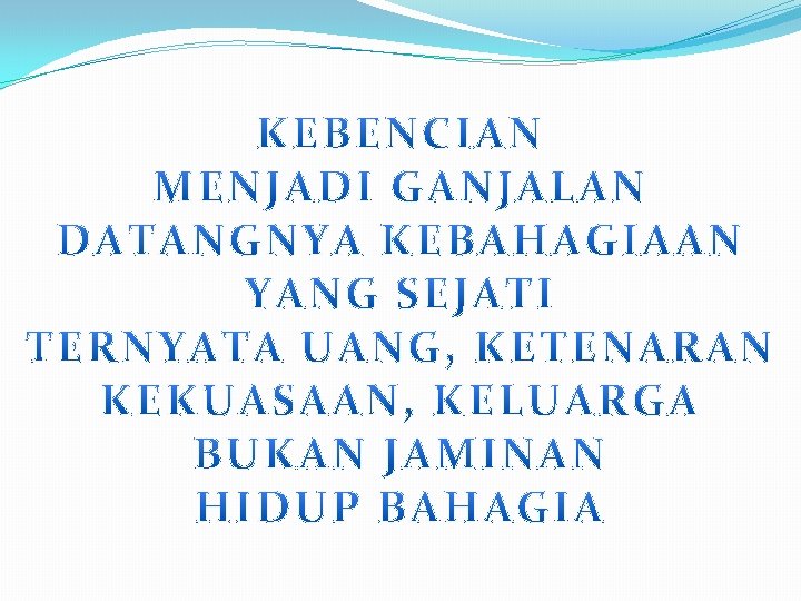 SEKEDAR DIBERKATI SAJA BUKAN MENJADI TUJUAN AKHIR DARIPADA TUHAN ATAS HIDUP KITA TETAPI HIDUP JADI BERKAT ADALAH TUJUAN AKHIR TUHAN ATAS HIDUP KITA BERHENTI PADA TUJUAN PERTAMA SAJA ADALAH SIKAP HIDUP YANG MURAHAN
