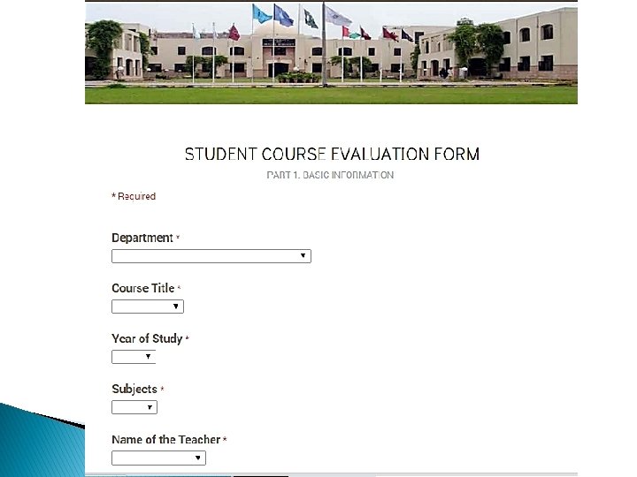 Online Survey for Teachers and Course Evaluation by Students � The Quality Enhancement Cell at University of Health Sciences will arrange a workshop on online filling of the proformas and to discuss each and every item in course and teacher evaluation proformas by the end of this month.