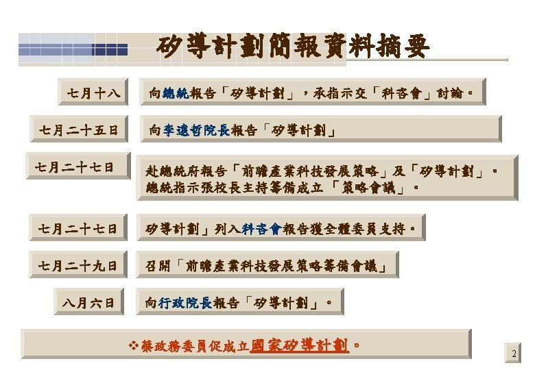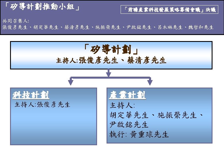產官學研前瞻科技產業策略 知識經濟,綠色矽島 National Si -Soft Project – The engine of all industries The food
