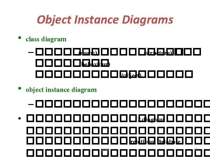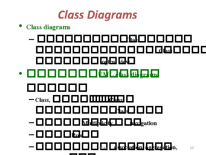 Static Structural Diagrams • แสดงกราฟ�������� �� static relationships • ����� Static Structural Diagrams – class diagram : classifier view – object instance diagram : instance view OOAD 11