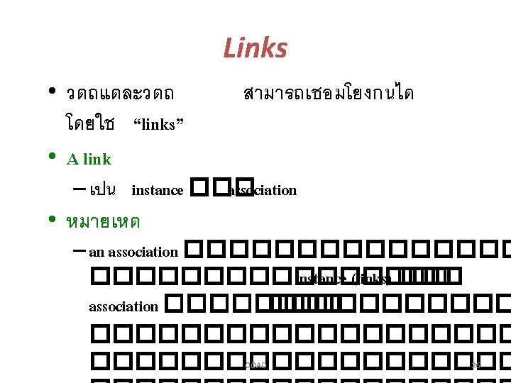 Associations, Objects & Classes • สำหรบ association ������� 2 �������� link ����� 0 ��� 1 link • ������� 2 ����������� 1 association (Multiple Assoications) ��� association ��������� association • Multiple associations ��������� OOAD 31