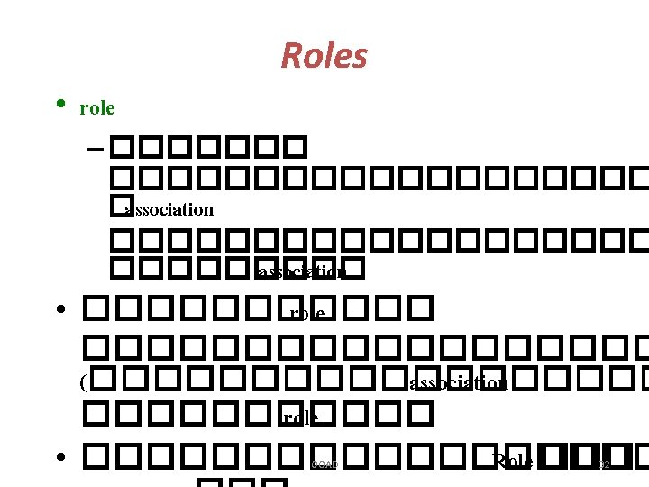 Role names • ���������� Role ��������� link �������������� Person Manager Supervises Name Insurance no. Address Salesperson OOAD 35