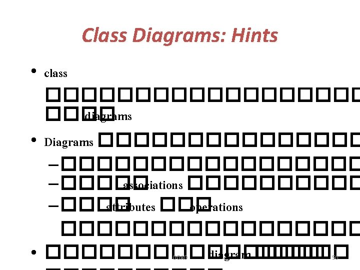 Class Diagrams • • Associations Generalization ��� Classification Aggregation OOAD 21