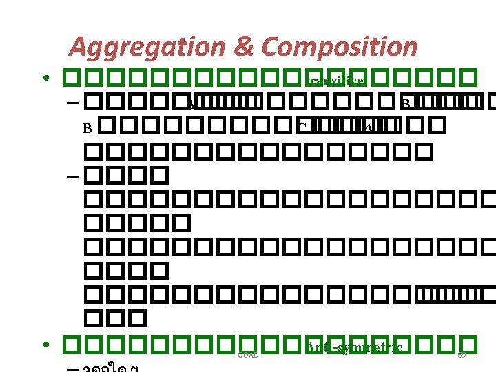 Notation for aggregation Class A ���� Class B Class C OOAD 65