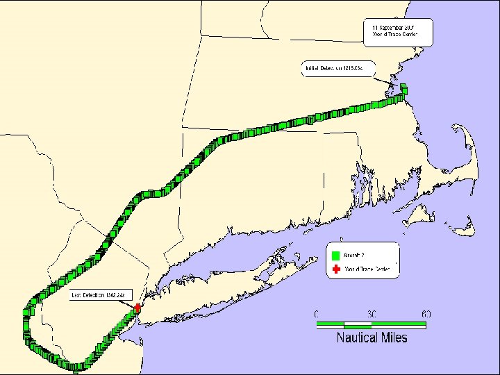 Pittsburgh • United Flight 93 (Boeing 757) – Newark, NJ to San Francisco • Crash approximately 10: 00 am Eastern • Initial Radar Data: – Detroit, MI (ARSR-1 E); DTW-J 62 • Final Radar Data: – The Plains, VA (ARSR-3); PLA-J 50 • Radar coverage lost for portion of flight