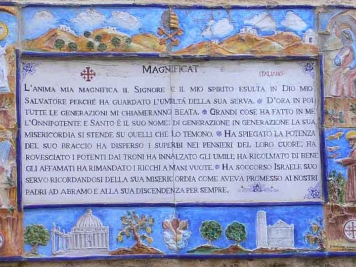 Magnificat anima mea Benedetta tu fra le donne Domimum et exultavit e benedetto il frutto del spiritus meus in Deo tuo grembo salutari meo Gesù