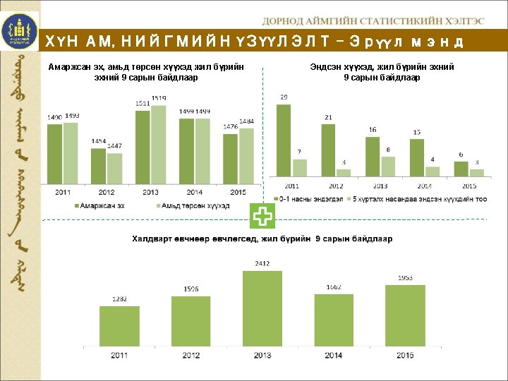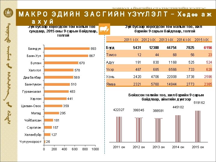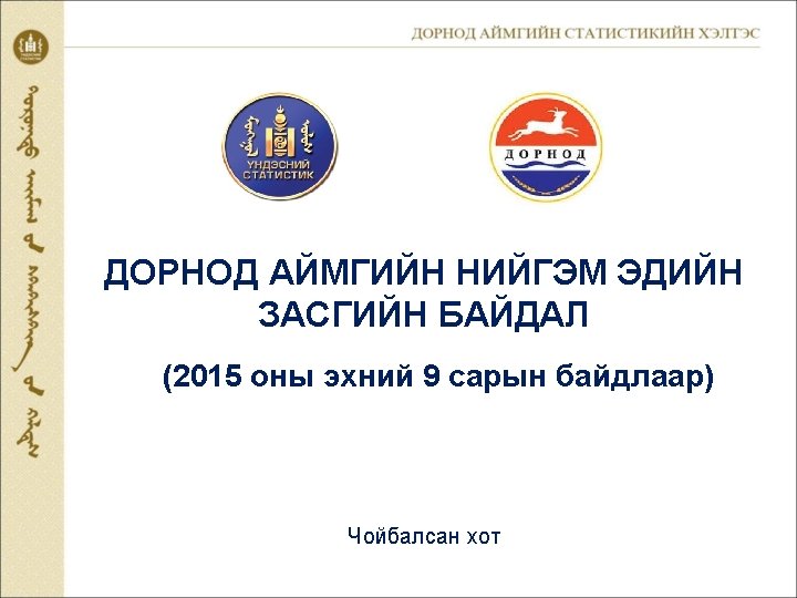 9 2442 9 2244 4 2073 3 1436 Slides: 9 Download presentation Ургац хураалт жил бүрийн 9 сарын байдлаар 2442, 9 2244, 4 2073, 3 1436, 6 1183, 1 986, 8 496, 5 2011 2012 459, 4 2013 Төмс 817. 1 2014 609. 9 2015 Хүнсний ногоо Бэлтгэсэн хадлан жил бүрийн 9 сарын байдлаар 53936 2009 51637, 3 2010 48666 2011 54060, 4 41902, 4 2012 2013 47087, 8 2014 54316, 5 2015 Анхаарал хандуулсанд баярлалаа www. statis. mn/portal www. nso. mn Phone-70582879 70584240 dstatistic@yahoo. com 9