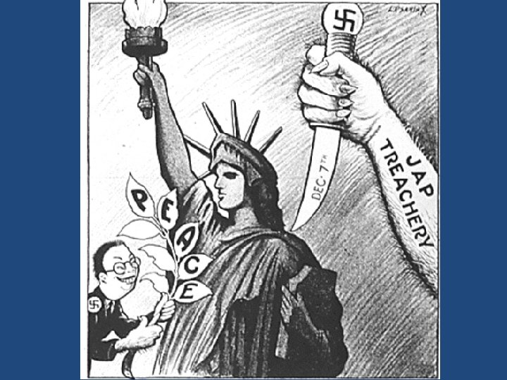 Pearl Harbor • U. S. Embargoes on Japan – Prohibited trade of steel and oil – Required Japan’s halt on expansion and removal from China • December 7, 1941 – Japanese surprise attack on U. S. naval base at Pearl Harbor in Hawaii – 2, 400 Americans killed – “a date that will live in infamy” • United States enters WWII – U. S. declares war on Japan (12/8/41) – Germany and Italy declare on U. S. – German invasion of Soviet Union (1942) – Allies • U. S. , Great Britain, Soviet Union – Axis • Germany, Italy, Japan
