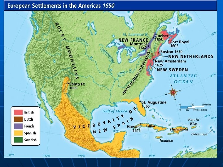 Settlement v. Colony n Settlement – a place were people first live in a new land • Often officials who rule over native people n Colony- a group of people who leave their native country to from a new settlement • Still deeply connected to the mother land
