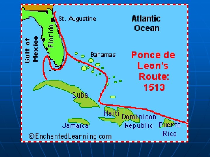 Juan Ponce de Leon n n 1513 Explored Florida and claimed it for Spain In search for Fountain of Youth …… did he find it?