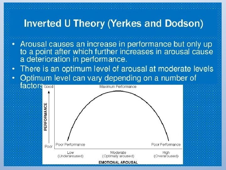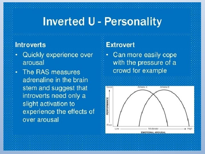 Critique of Inverted - U • No account for athletes becoming over aroused and then recovering to compete effectively.