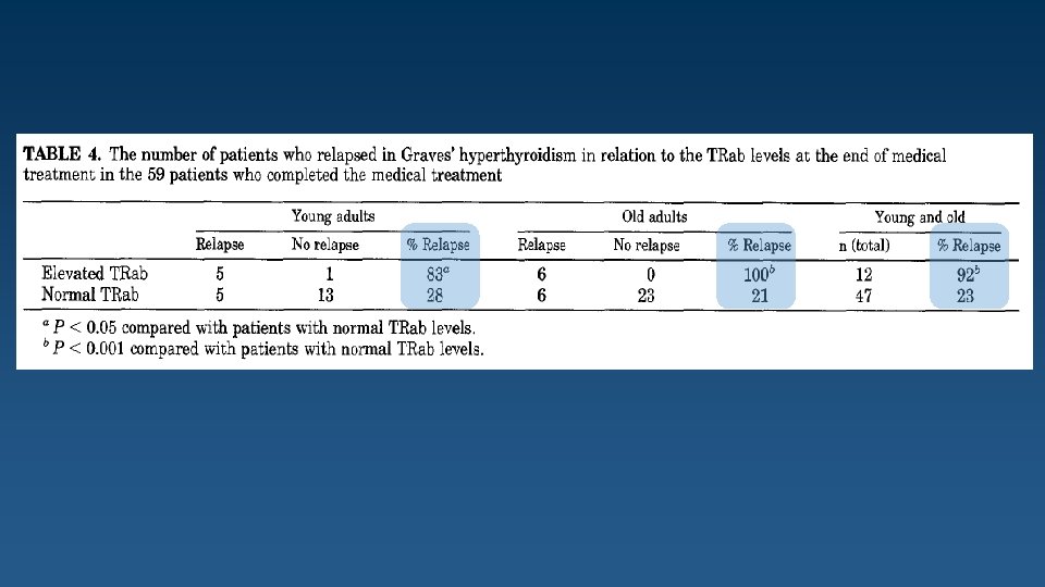 179 patients between 1983 and 1990 with hyperthyroidism caused by Graves’ disease. Young adult : 20 -34 Yr. Old adult : 35 -55 Yr.