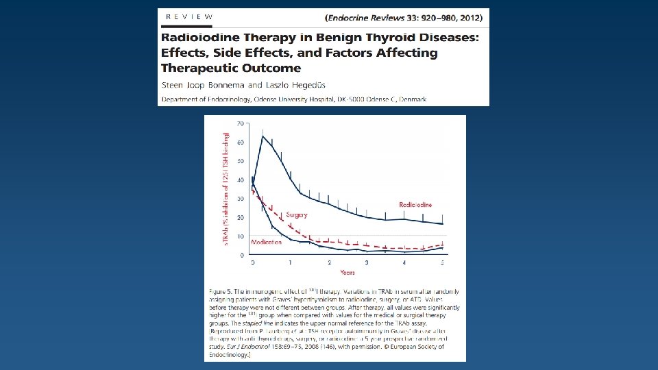 Patient History Based on a diagnosis of recurrence of Graves’ Disease, the patient was treated with Methimazole 10 mg/day and this treatment was continued for 3 years. Lab. Results (Average) f. T 4 : 2. 16 ng/d. L (Average) T 3 : 210 ng/d. L What is your plan/recommendation ?