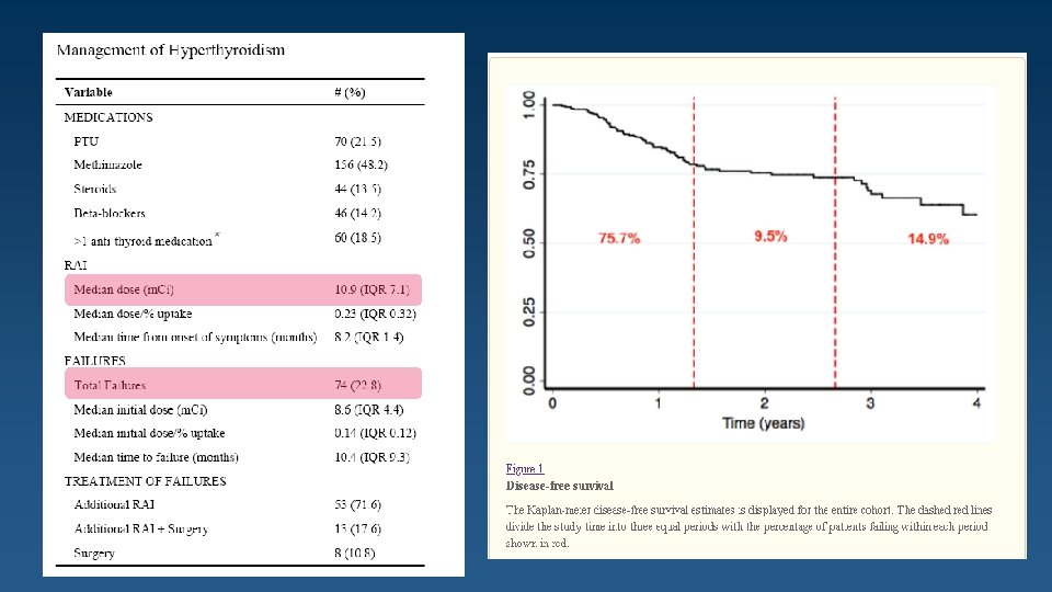 Final Multivariate Model for failure Conclusions Laboratory values at presentation can predict which patients with hyperthyroidism are at risk for failing RAI treatment. Higher doses of RAI or surgical referral may prevent the need for repeat RAI in selected patients.