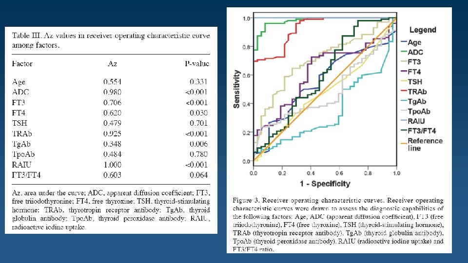 The present study showed that RAIU, ADC and TRAb are all of diagnostic value for reliably differentiating between GD and PT.