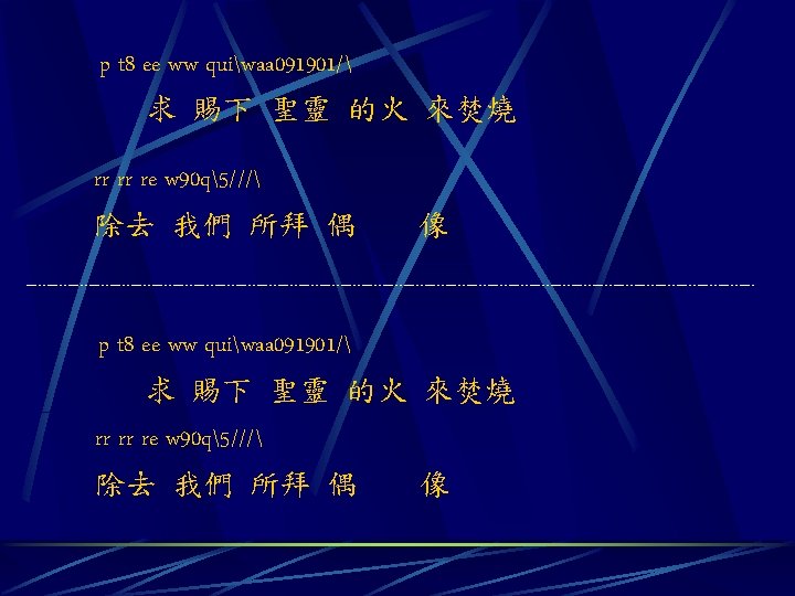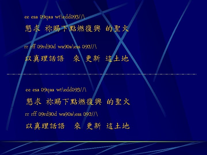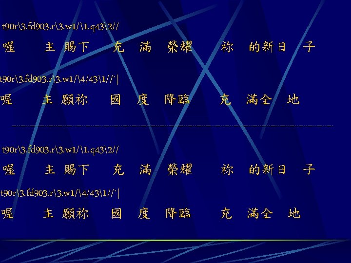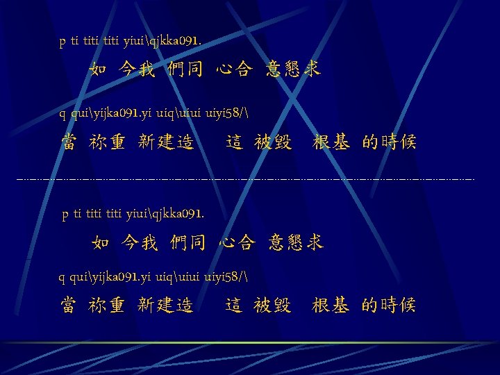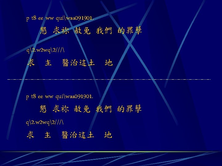A 44 p ti titi yiuiqjkka 091 q Slides: 8 Download presentation A 4/4 p ti titi yiuiqjkka 091. q qiuiyijka 901. 天 父上 帝求 祢醫 治眷顧 這 荒涼 的土地 yi uiquiui uiyi yi 58. 因 祢是 施恩 憐憫 的主 A 4/4 p ti titi yiuiqjkka 091. q qiuiyijka 901. 天 父上 帝求 祢醫 治眷顧 yi uiquiui uiyi yi 58. 因 祢是 施恩 憐憫 的主 這 荒涼 的土地
