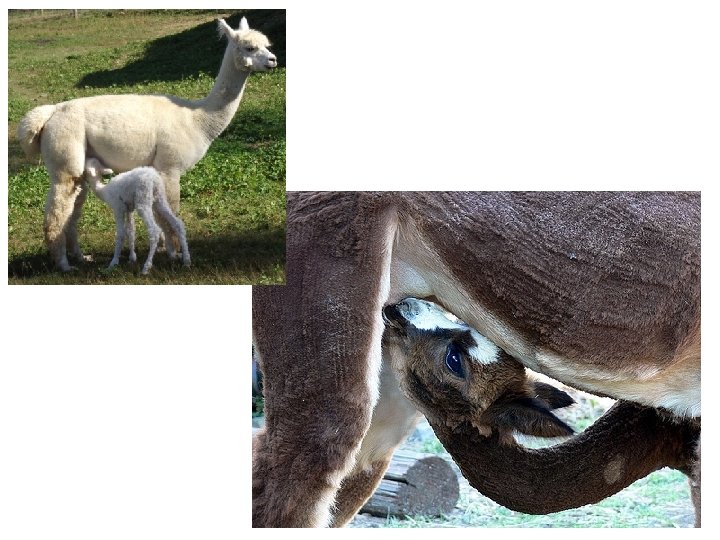 A alpaca (Vicugna pacos) parece unha llama pequena. Deriva da vicuña e da llama. Mide entre 80 cm e 1 m de altura na cruz e pesa entre 50 e 80 kg. Vive en rebaños, que pastan entre os 3. 500 e os 5. 000 m de altiutde, entre o sur do Perú e o norte de Chile. Área de distribución