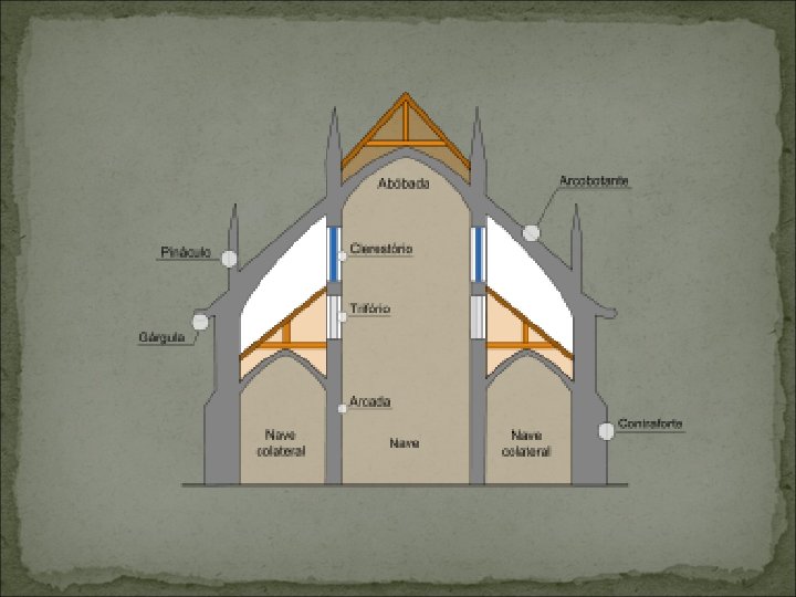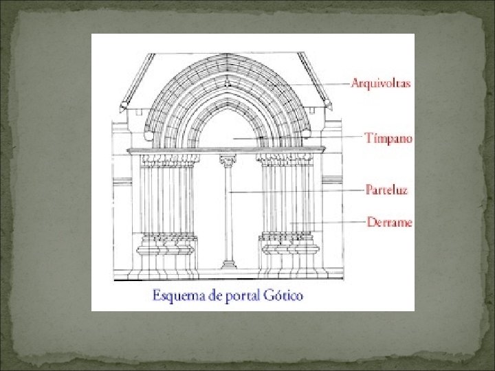A Arquitetura Gótica Já na Abadia de Saint-Denis se observa uma maior importância dada à escultura que no românico, sendo que se vai afirmar pela primeira vez como elemento independente à arquitetura. De qualquer modo a escultura estará ainda estritamente ligada à catedral mas, em oposição ao “amontoado” do românico, demonstra agora consciência do seu próprio espaço e ocupa-o de modo ordenado e claro.