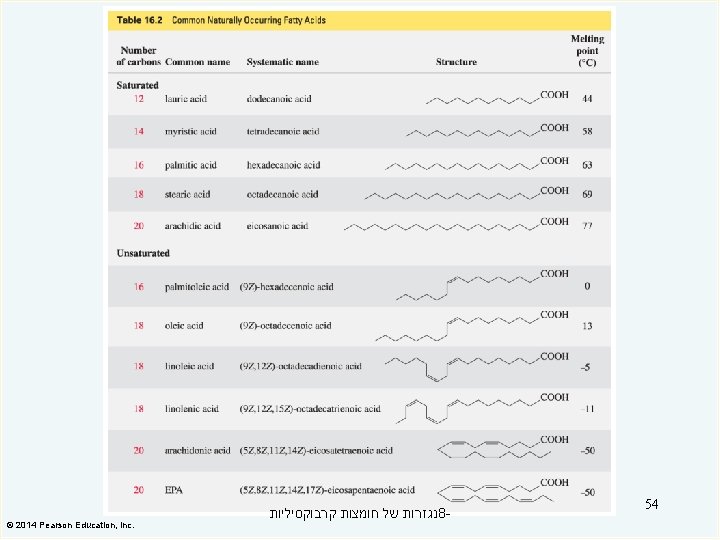Saturated and Unsaturated Fatty Acids נגזרות של חומצות קרבוקסיליות 8© 2014 Pearson Education, Inc. 55
